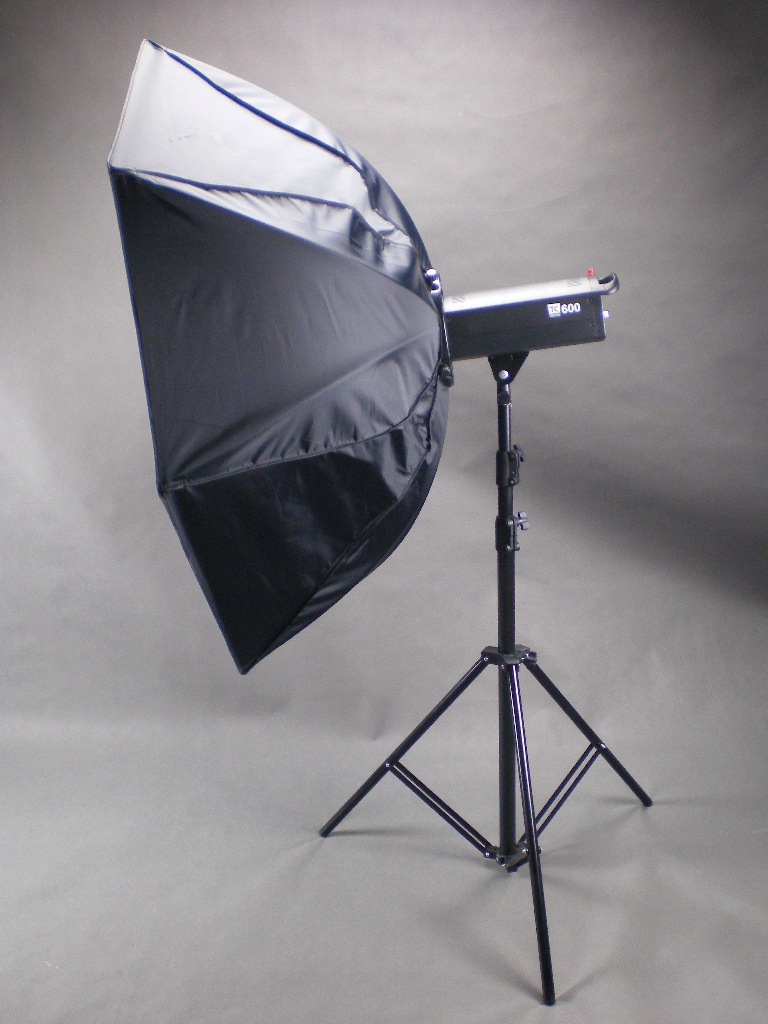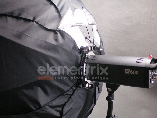 Softbox mocujemy na stało na głowice lampy odblaskowej.
