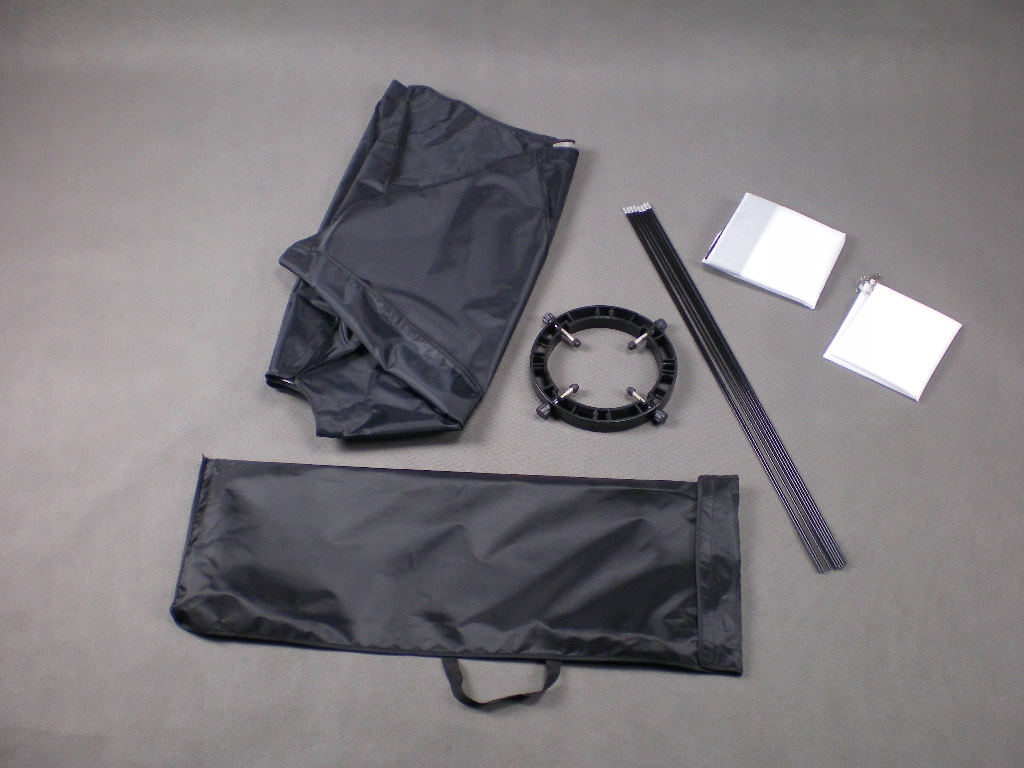 Softbox idealny do zdjęć mniejszych natur, portretów oraz do dodatkowego naświetlenia części sceny. Vysokiej jakości wytrzymała konstrukcja, wewnętrz srebrny, 2x dyfuzor (zewnętrzny i wewnętrzny), prosty montaż.