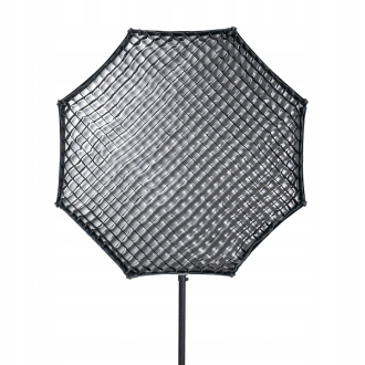 Dopasowane rozproszenie swiatla W zestawie z sofboxem Aputure Light Octadome 120 znajdziesz 3 tkaniny dyfuzyjne. Dyfuzor wewnetrzny oferuje rozproszenie na poziomie -1,5 EV. Kolejne dwie tkaniny zainstalujesz na kopule, znacznie dalej od palnika lampy. Zapewniaja one rozproszenie na 2 róznych poziomach: -1,5 EV oraz -2,5 EV. Mozesz laczyc je w dowolnych kombinacjach, zmiekczajac swiatlo i rozmywajac cienie w zaleznosci od potrzeb. Precyzyjna kontrola wiazki swiatla Chcesz precyzyjnie os´wietlic´ wybrany obiekt lub przestrzen´, nie rozpraszaja?c s´wiatla na pozostala? cze?s´c´ kadru? Pomoze w tym plaster miodu (nazywany tez gridem), który otrzymasz w zestawie z softboxem oktagonalnym Aputure Light Octadome 120. Charakterystyczna kratka pozwoli nadac´ s´wiatlu odpowiedni kontrast i ukierunkowac´ je dokladnie tak, jak tego potrzebujesz!