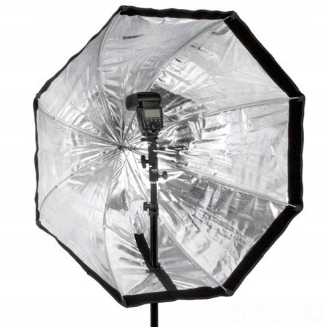 Lampa błyskowa ustawiona jest wewnątrz softboxu, światło pada w przeciwnym kierunku do czaszy - dzięki temu uzyskane światło jest rozprowadzone równomiernie. Softbox ten można swobodnie zestawiać z szynami i pierścieniami. Można go złożyć w kilka sekund i wygodnie przetransportować
