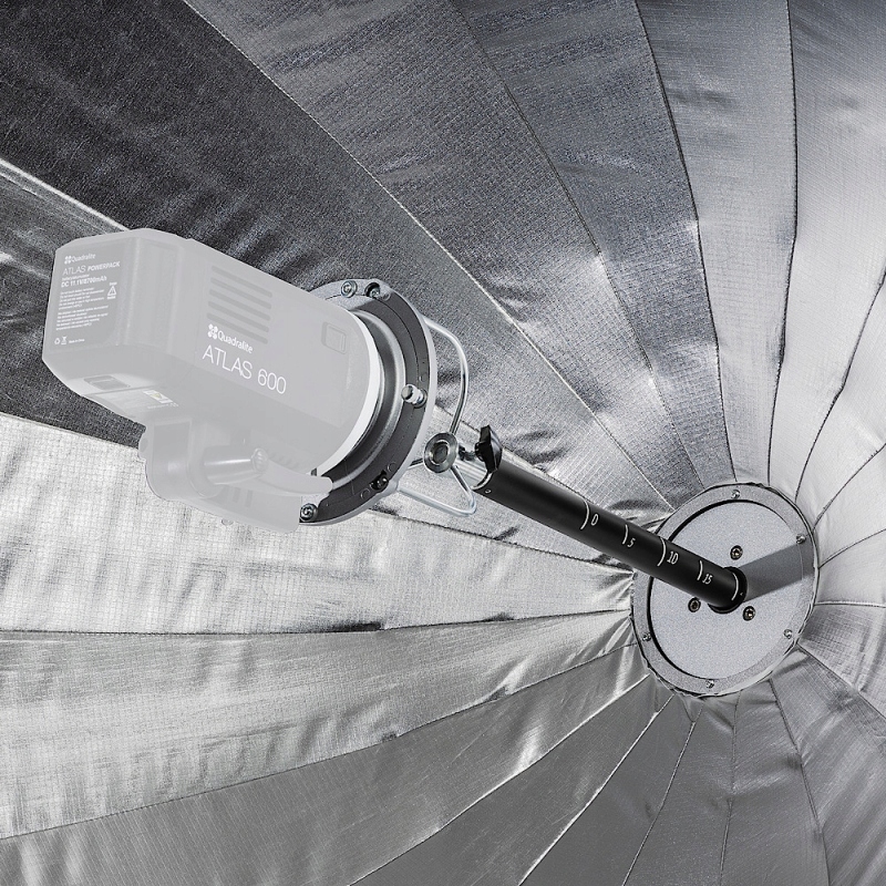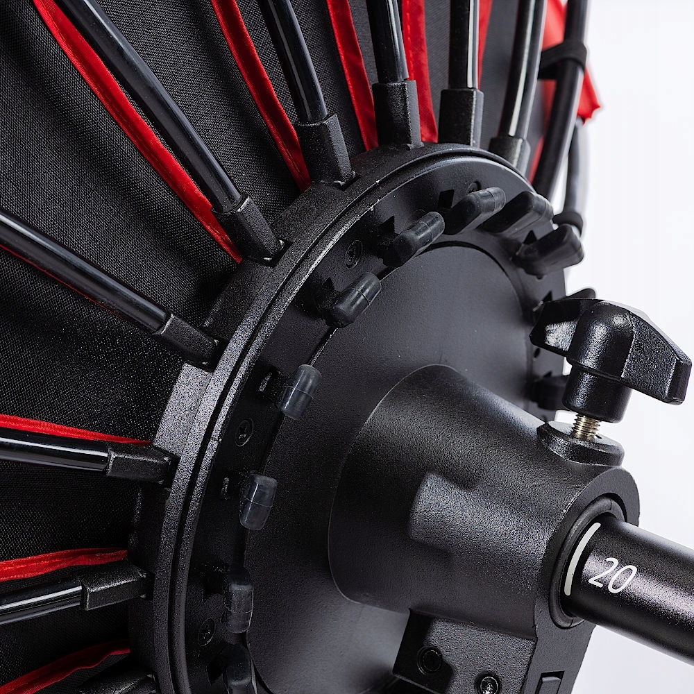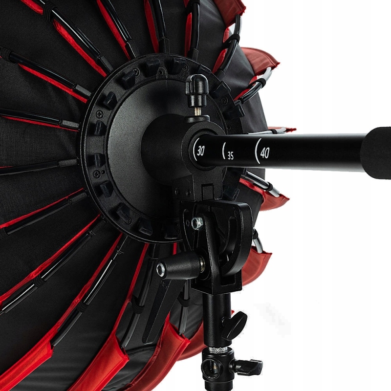 Zastosowanie pręta ogniskującego, którym możemy ustawiać kąt padania światła we wnętrzu softboxa pozwala na bardzo szybką zmianę jego rodzaju od kontrastowego po miękkie. Pozwala to również na precyzyjną kontrolę nad światłem zarówno stałym jak i błyskowym.