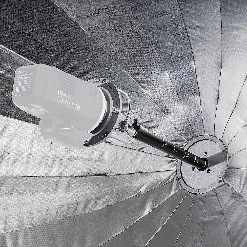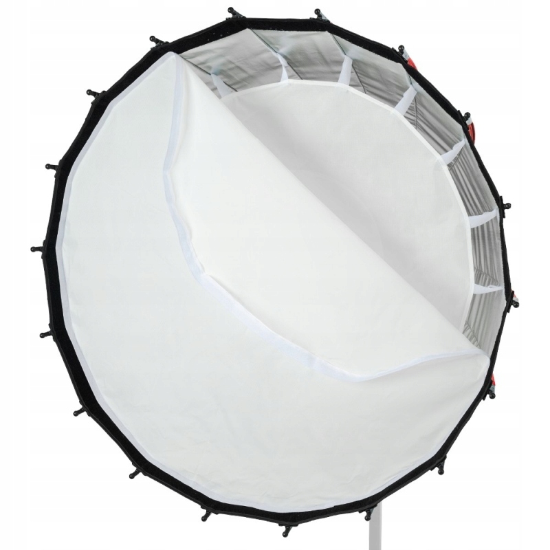 Quadralite Octadecagon Focus Softbox Para to seria modyfikatorów, która posiada paraboliczny kształt i możliwość szybkiej zmiany odległości zamontowanego źródła światła od środka czaszy. Dzięki temu rozwiązaniu pozwala na uzyskiwanie różnego charakteru światła z jednego modyfikatora.