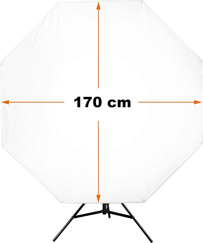 Wysokiej jakości Softbox Octagon o średnicy 170 cm jest idealnym pomocnikiem zapewniającym miękkie i równomierne oświetlenie. Niezależnie od tego, czy fotografujesz urodę, ludzi czy glamour, kiedy chcesz uzyskać możliwie najbardziej nieoślepiające oświetlenie, ten Softbox jest właściwym narzędziem. Dzięki innowacyjnej technice montaż jest łatwy w kilku krokach. Opcjonalnie można zastosować tylny dyfuzor, który również znajduje się w zestawie, aby uzyskać bardziej miękkie światło. Przedni i tylny dyfuzor można łatwo zdjąć za pomocą zapięcia na rzep.