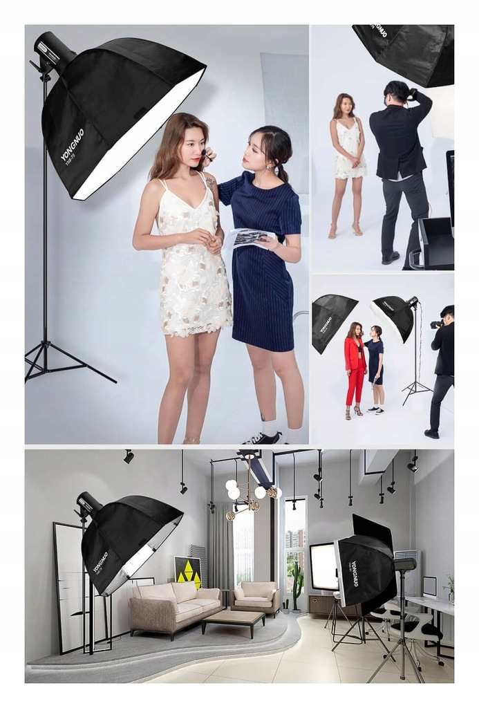 Yongnuo YN4-60 to wysokiej jakości softbox o wymiarach 60 x 60 cm. Softbox posiada popularne mocowanie typu Bowens, pasujące do większości dostępnych na rynku lamp studyjnych. W zestawie wraz z softboxem znajdują się również dwie warstwy tkaniny dyfuzyjnej oraz praktyczny pokrowiec transportowy.