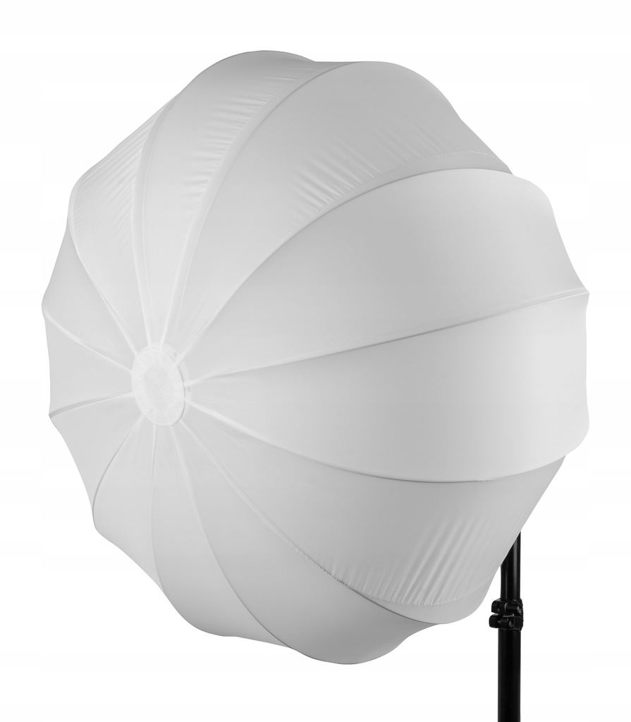 Glówne cechy produktu - sferyczny softbox o srednicy 85 cm - ultralekka konstrukcja (1,35 kg) - blyskawiczny montaz i demontaz - uniwersalne mocowanie Bowens - unikalny kulisty ksztalt (konstrukcja, która wygladem nawiazuje do lampionu) - umozliwia uzyskanie miekkiego i przyjemnego dla oka swiatla - pozwala pozbyc sie ostrych, niepozadanych cieni - zapewnia równomierne rozprowadzanie swiatla - metalowy stelaz gwarantujacy optymalny poziom naprezenia dyfuzora - wnetrze oslony wykonczone srebrna powloka odbijajaca swiatlo - mocne rzepy i dodatkowe gumki zabezpieczajace pozycje dyfuzora - idealny wybór do vlogów, transmisji na zywo i zdjec portretowych