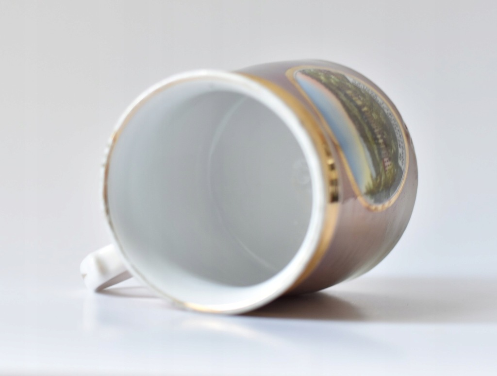 Kubek został wyprodukowany w manufakturze porcelany w Stanowicach koło Strzegomia.