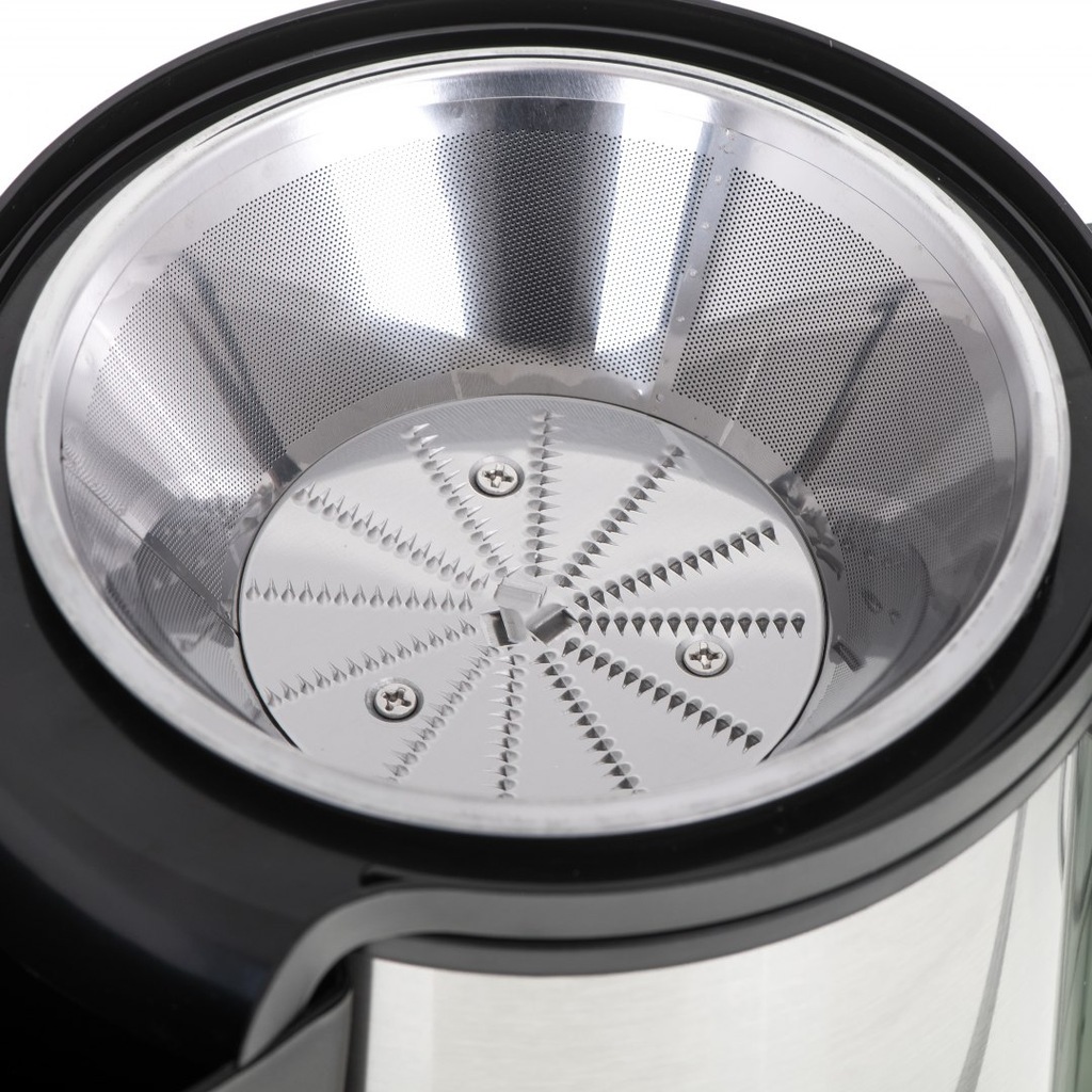- 3 stopniowy przełącznik, Blokada przed uruchomieniem nieprawidłowo złożonego urządzenia, Błyskawicznie wyciska sok z całych jabłek, marchewek i innych owoców, Drobne sitko ze stali nierdzewnej do aksamitnych soków, Odprowadzanie soku systemem NIEKAPKIEM, Otwór na całe owoce i warzywa o średnicy 65mm, Stabilna podstawa antypoślizgowa - przyssawki, Szybkie i łatwe czyszczenie - można myć w zmywarce, Wykonana ze stali szlachetnej najwyższej jakości, W zestawie pojemnik na sok (0,45L) oraz miąższ (1,5L)