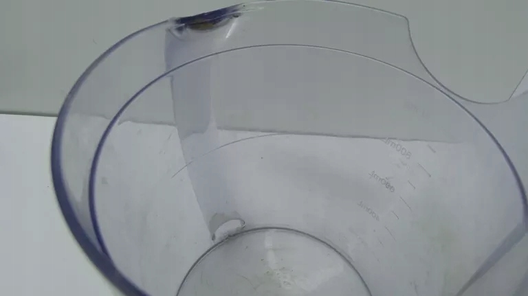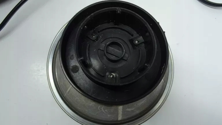 - Stan wizualny: dobry / widoczny na zdjęciach - ślady normalnego użytkowania na urządzeniu tj. zabrudzenia i otarcia; na plastikowych elementach widoczne otarcia i ryski; pojemnik z zestawu w kiepskim stanie, liczne przetarcia i lekkie pęknięcie