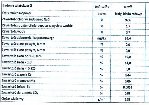 Wysoka zawartość NACl - aż 97,6 %