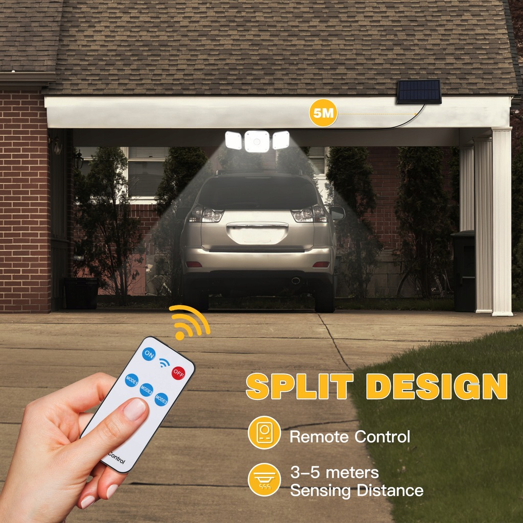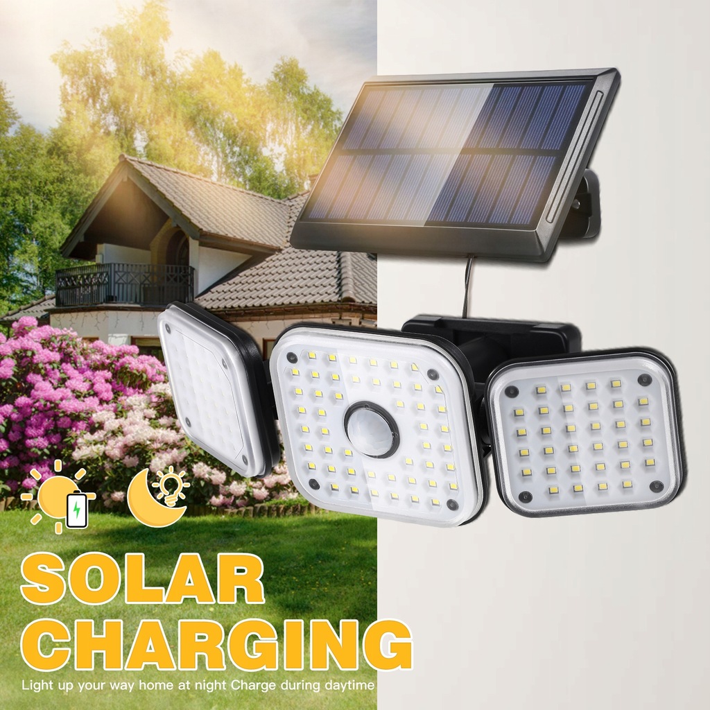 ✅This product is a practical solar light for gardens, streets, garages, sidewalks, patios, and backyards. The 3-head design better increases the focusing effect and projection distance of the light to meet the needs of use. Features a built-in human motion sensor that lights up when motion is detected.