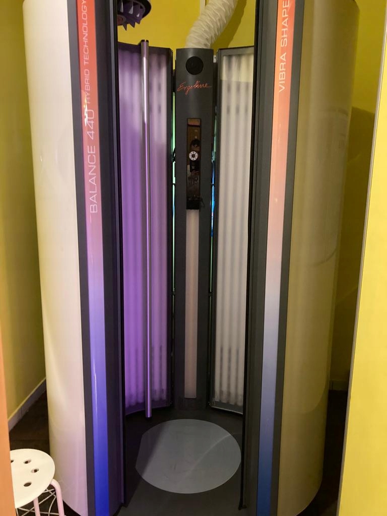 Ergoline Balance 440 to połączenie technologii hybrydowej z trningiem sportowym w postaci ćwiczeń na Vibra Shape. 10 minutowy seans opalania z Vibra Shape jest równoznaczny z pokonaniem 20 tys. kroków. Ćwieczenia na vibra Shape są delikatene dla stawów i mięśni, a jednocześnie poprawiają sprawność ruchową i koordynację ciała. Wspierają budowę mięśni, przyspieszają spalanie tłuszczu. Możesz się opalić i jednocześnie poprawić swoją kondycję. Wibracje mogą pomóc schudnąć, zmniejszyć widoczność cellulitu i ujędrnić ciało. Efekty są zintensyfikowane, a nawet trudno dostępne miejsca, takie jak plecy i ramiona, są równomiernie opalone.