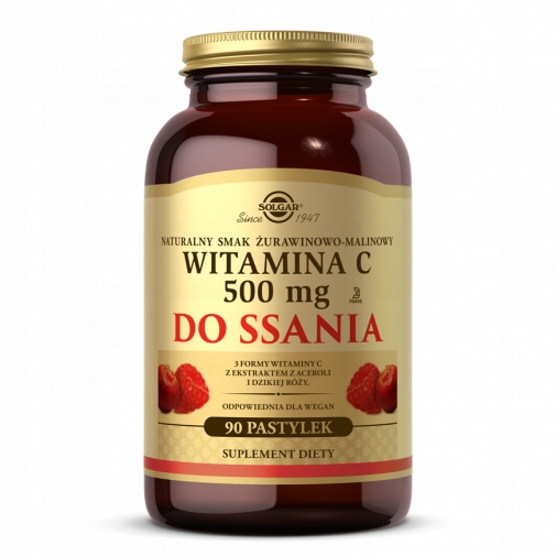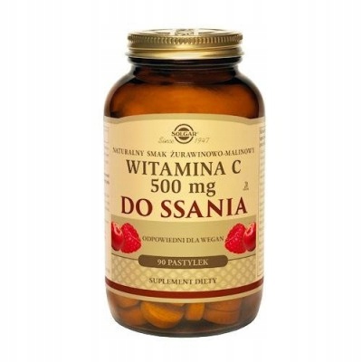 - SOLGAR Witamina C do ssania 500 mg smak żurawinowo-malinowy - 90 pastylek