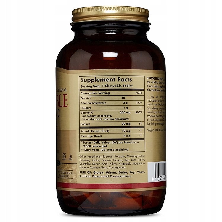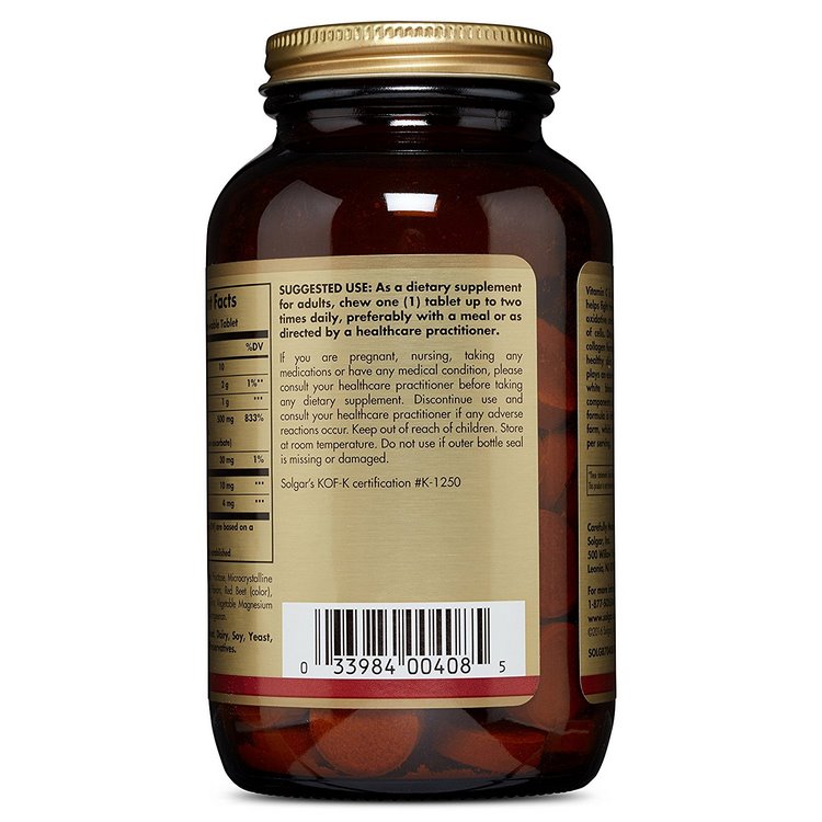 SOLGAR Witamina C 500 mg 90 pastylek o smaku żurawinowo-malinowym (17349455228)