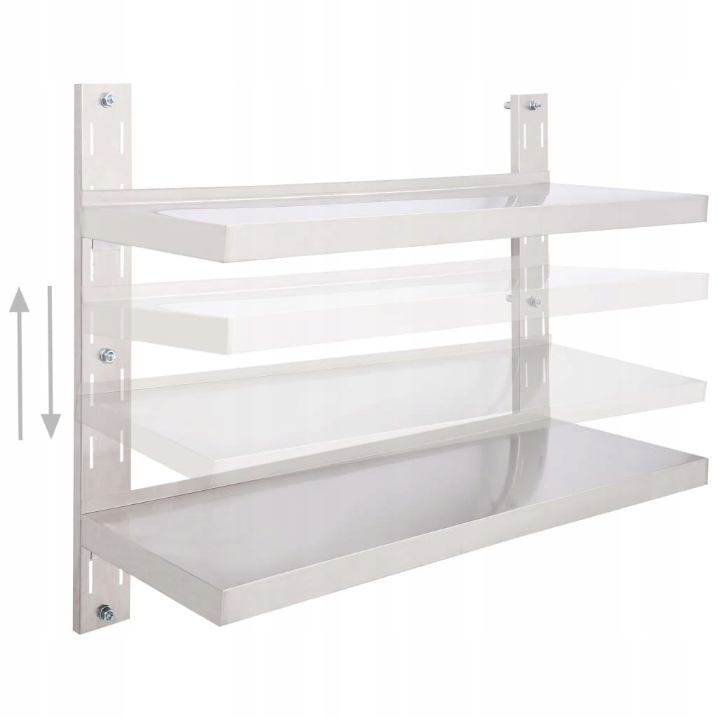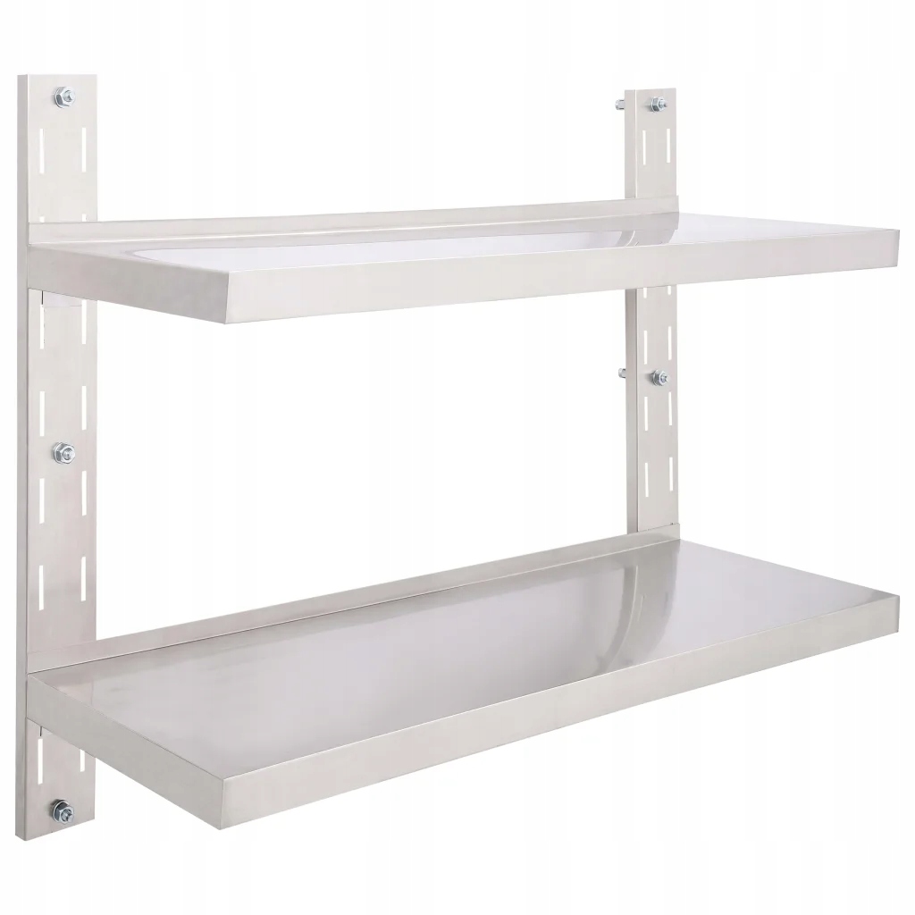 Nasza 2-poziomowa półka ścienna ze stali nierdzewnej jest nie tylko stylowa, ale również bardzo funkcjonalna, będzie zatem znakomitym wyborem dla tych, którzy potrzebują dodatkowej przestrzeni do przechowywania w kuchni. Posłuży ona jako idealne miejsce na talerze, naczynia oraz różne inne akcesoria kuchenne. Wykonana ze stali nierdzewnej półka ścienna jest niezwykle trwała, stabilna i łatwa w czyszczeniu, co czyni ją idealną do miejsc, w których wymagany jest wysoki standard higieny. Jej maksymalne obciążenie wynosi 40 kg. Akcesoria montażowe znajdują się w przesyłce, a sam montaż półki jest prosty.