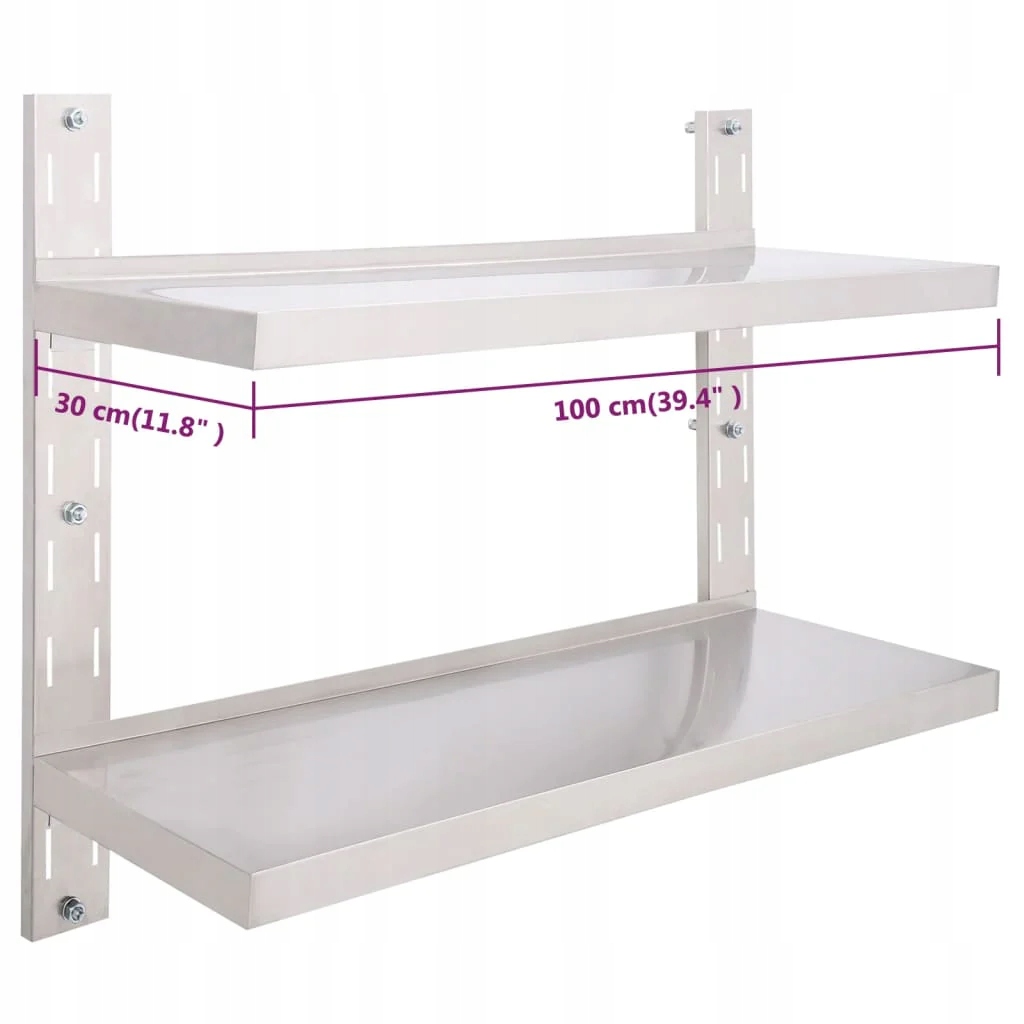 vidaXL 2-poziomowa półka wisząca, stal nierdzewna, 100 x 30 cm