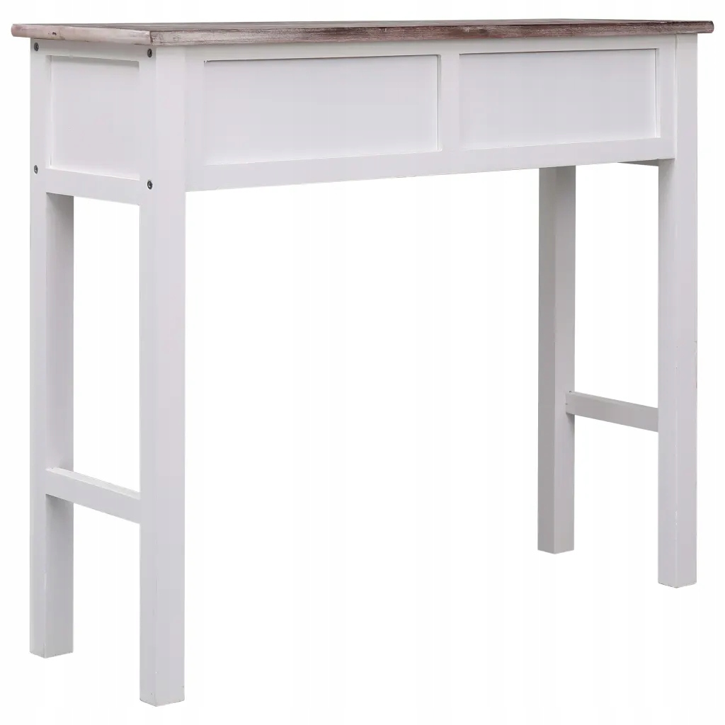 Dodaj nieco elegancji do wystroju swojego domu za sprawą naszego klasycznego, drewnianego stolika konsolowego. Mebel ten będzie znakomitym dodatkiem do Twojego wnętrza. Może posłużyć także jako stolik boczny lub dodatkowy blat. Wykonany z wysokiej jakości drewna paulownia i topolowego stolik posłuży przez lata i można go łatwo wyczyścić przy pomocy wilgotnej ściereczki. Posiada on 2 szuflady, zapewniające sporo miejsca do przechowywania mniejszych przedmiotów w zasięgu ręki i w sposób zorganizowany. Montaż stołu jest prosty.