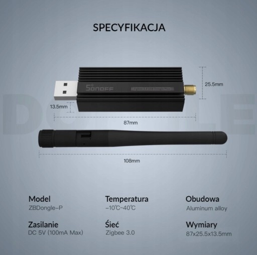 Sonoff ZBDongle posiada wbudowany wzmacniacz sygnału. Jest bardziej stabilny niż CC2531 i ConBee 2 i zapewnia 3x większy zasięg