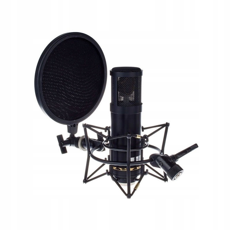 W komplecie otrzymujemy uchwyt elastyczny, pop filtr, kabel XLR-XLR oraz pokrowiec na mikrofon.
