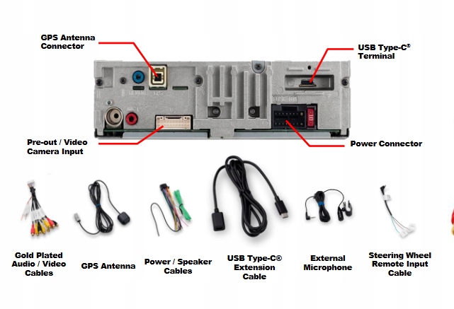 - Przewody połączeniowe (dźwięk/kamera)
