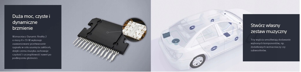 Radio ma szereg ustawień pozwalających dostosować dźwięk do własnych preferencji. Wbudowany wzmacniacz o mocy 4 × 55 W gwarantuje czyste brzmienie muzyki nawet przy wysokiej głośności.