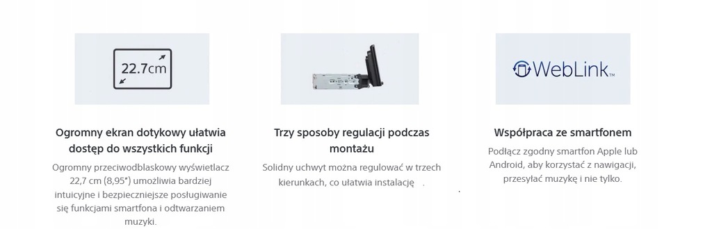 To jednodinowe radio samochodowe ma wyświetlacz o rozmiarze 22,7 cm (8,95″) precyzyjnie nachodzący na deskę rozdzielczą. Solidny uchwyt montażowy można regulować w trzech kierunkach, co ułatwia instalację w różnorodnych pojazdach. Obsługa nowych funkcji smartfonów i nowo dodane łącze HDMI zwiększają bezpieczeństwo i komfort w czasie jazdy.