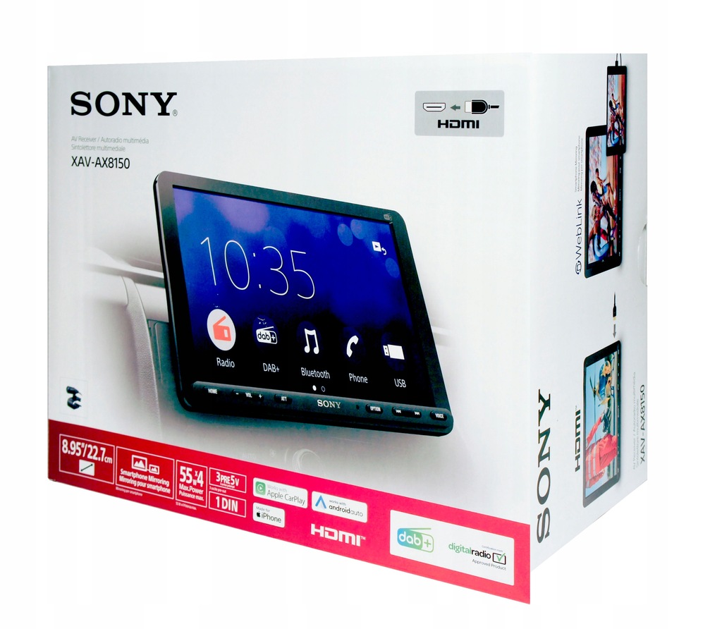 Radio samochodowe XAV-AX8150 ułatwia dostęp do informacji i rozrywki w trasie. Mimo jednodinowej konstrukcji ma ogromny ekran o rozmiarze 22,7 cm (8,95″), dzięki czemu inteligentna łączność, pomocna nawigacja i fantastyczny dźwięk są w zasięgu ręki. Nowo dodane łącze HDMI pozwala także podłączyć zewnętrzne urządzenie audiowizualne.