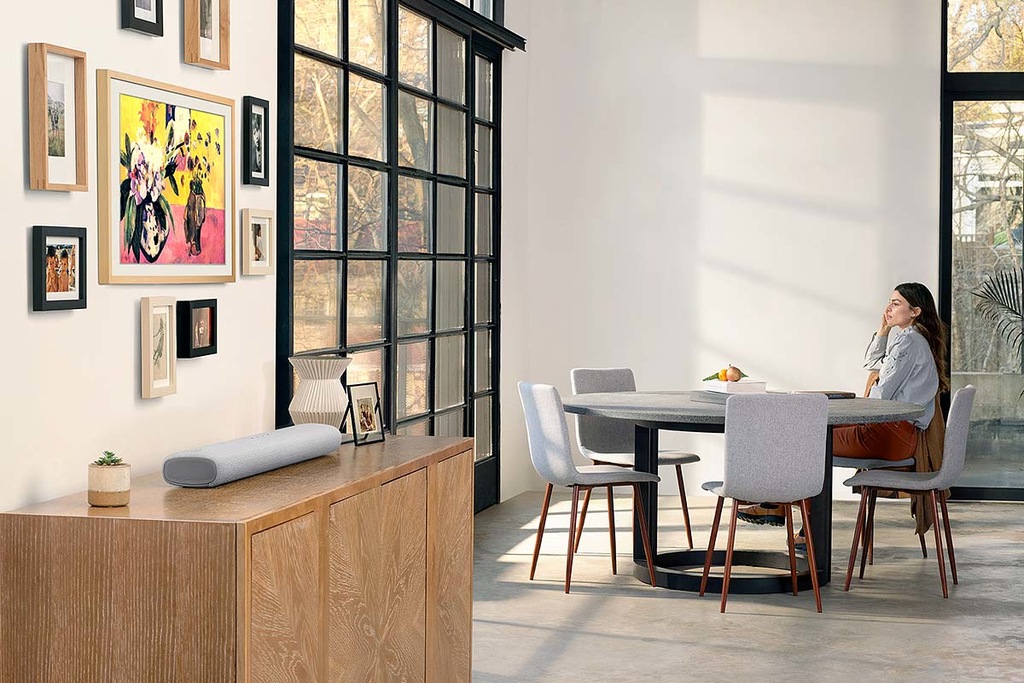 Dzięki dwustronnym głośnikom tubowym z technologią Samsung Acoustic Beam możesz cieszyć się przestrzennym, głębokim dźwiękiem w całym pokoju.