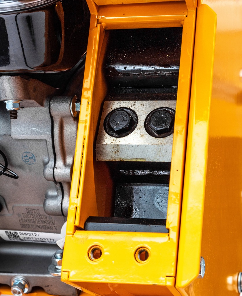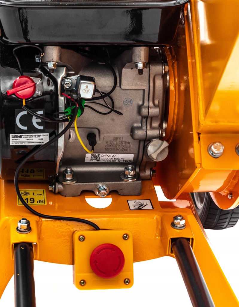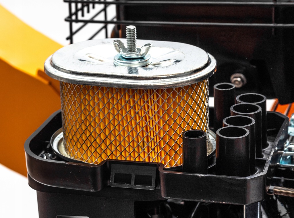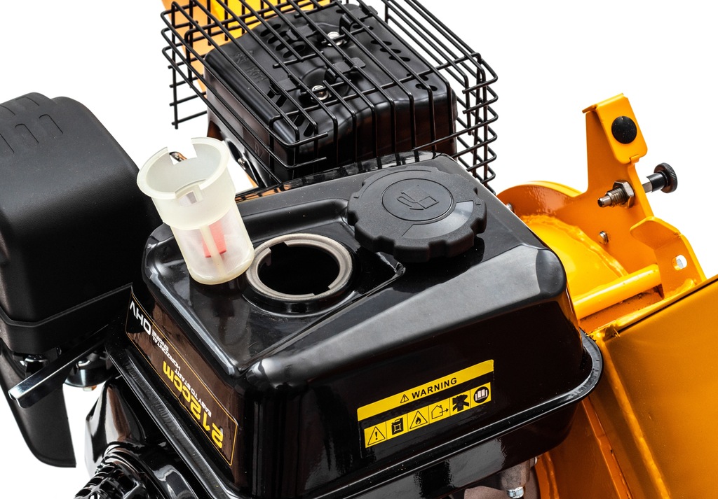 - przemyślana konstrukcja - brak często problematycznej przekładni pasowej i umieszczeniu silnika bezpośrednio pod kominem wlotowym, maszyna jest znacznie bardziej kompaktowa, nie zmniejszając przy tym wydajności. Silnik o pojemności 212 cm3 i zaawansowany system rozdrabniania z dużym i ciężkim cylindrem obrotowym pozwalają rozdrabniać gałęzie o średnicy do 50 mm