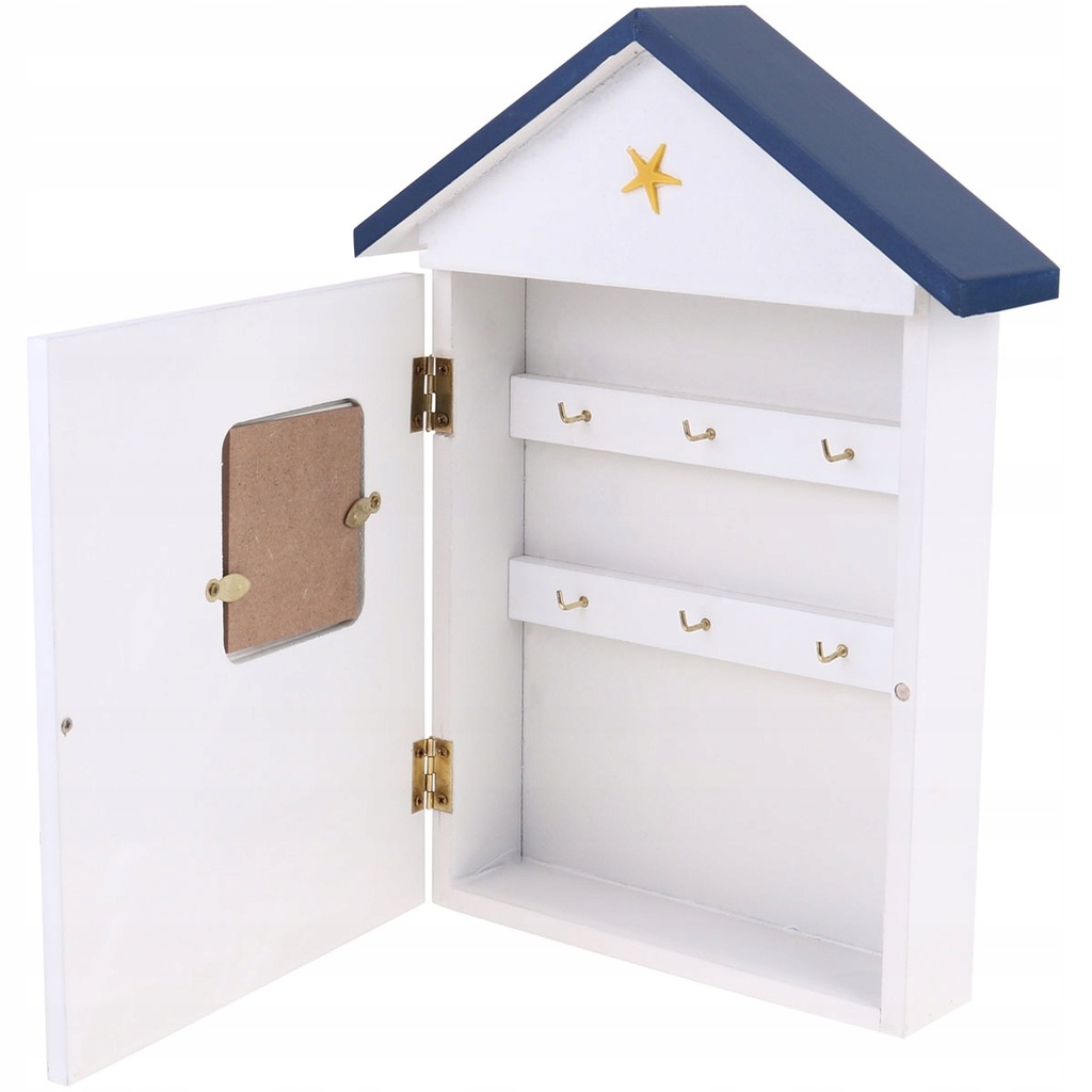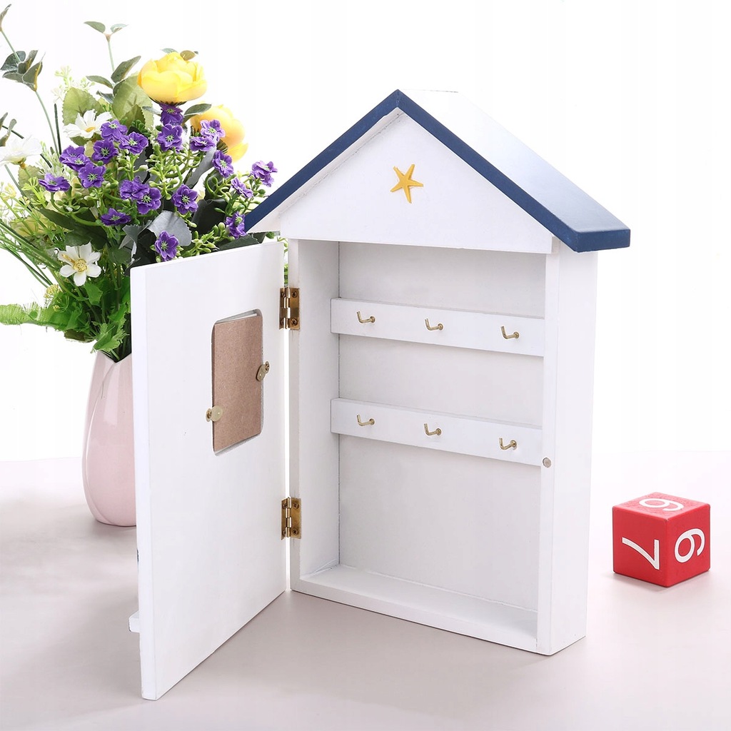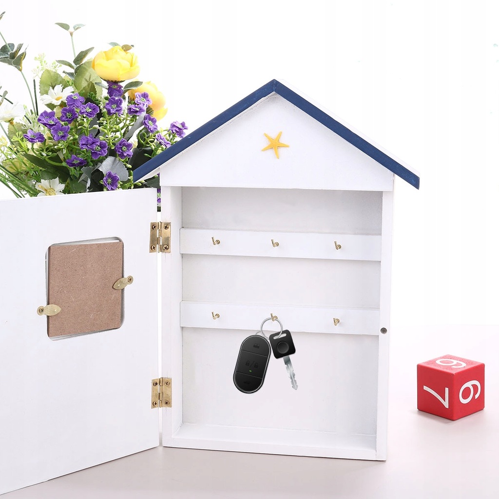 This is a Mediterranean style wooden storage box. It can keys, jewelry, etc. Make your items in order, and provide you a tidy environment. Wooden mini house is designed to keep your keys organized. Not only can be a key holder, but also be a nice decoration for home.