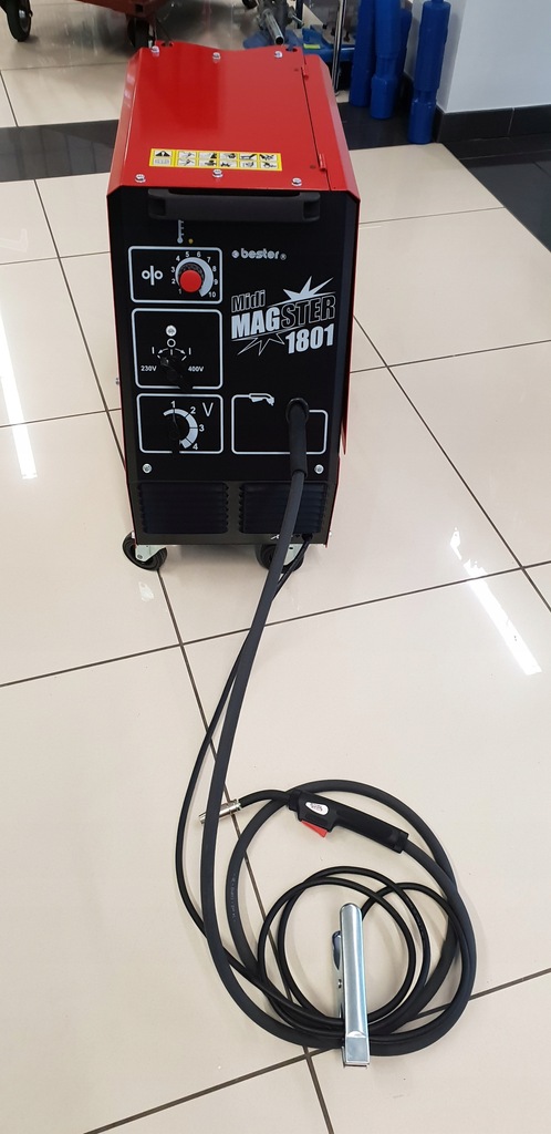 - Bester Midimagster 1801 półautomat spawalniczy z 2,5 metrowym uchywtem spawalniczym, przewodem masowym, rolka na drut 0,6-0,8mm, przewód gazowy 2m, przewód zasilający z wtyczką 230V, oraz przewód z wtyką 400V