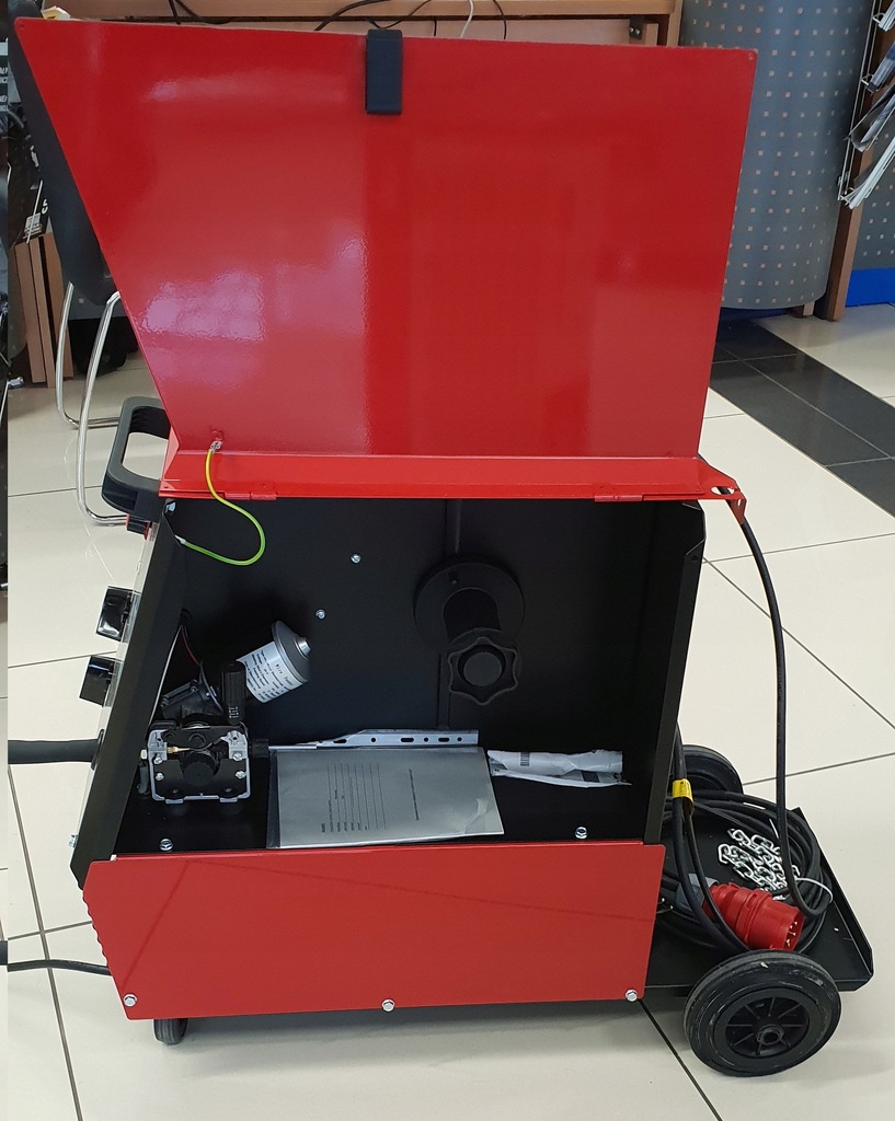 Model wyposażony są w solidny podajnik z rolką 30mm oraz posiada możliwość zastosowania 15 kg szpuli z drutem