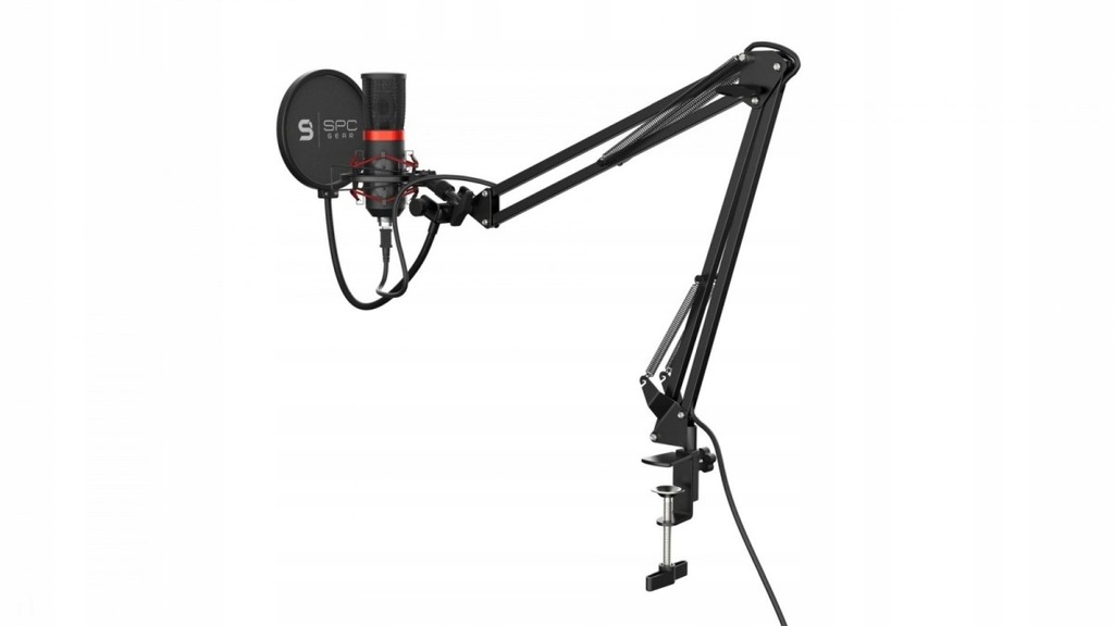 SPC Gear SM950 Streaming USB Microphone to wysokiej klasy mikrofon, który został wyposażony w chipset USB marki Cmedia i dużą membranę. Kierunkowe nasłuchiwanie (kardioidalna charakterystyka) zapewnia bardzo dobre wygłuszenie niechcianych dźwięków otoczenia, a bardzo dobrej jakości komponenty, takie jak przetwornik dźwięku, chipset USB i wewnętrzne filtry pozwalają uzyskać ciepłe, radiowe brzmienie. Dołączone do zestawu akcesoria w postaci regulowanego i wszechstronnego ramienia, POP filtra, długiego przewodu USB a także koszyka antywstrząsowego przydadzą się zarówno streamerowi, youtuberowi, jak i muzykowi. Mikrofon nie wymaga żadnego dodatkowego oprogramowania i działa na zasadzie Plug&Play. Wygodnym rozwiązaniem jest także przycisk do wyciszania SM950, umieszczony na obudowie.