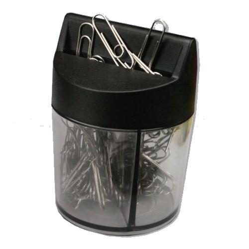 Spinacz biurowy 100szt, metalowy o grubości 0,8mm. Przezroczysty pojemnik ze specjalnym otworem posiadającym magnes, który ułatwia wyjmowanie spinaczy. Idealne do spinania większej ilości kartek, dokumentów lub notatek w szkole, domu czy biurze.