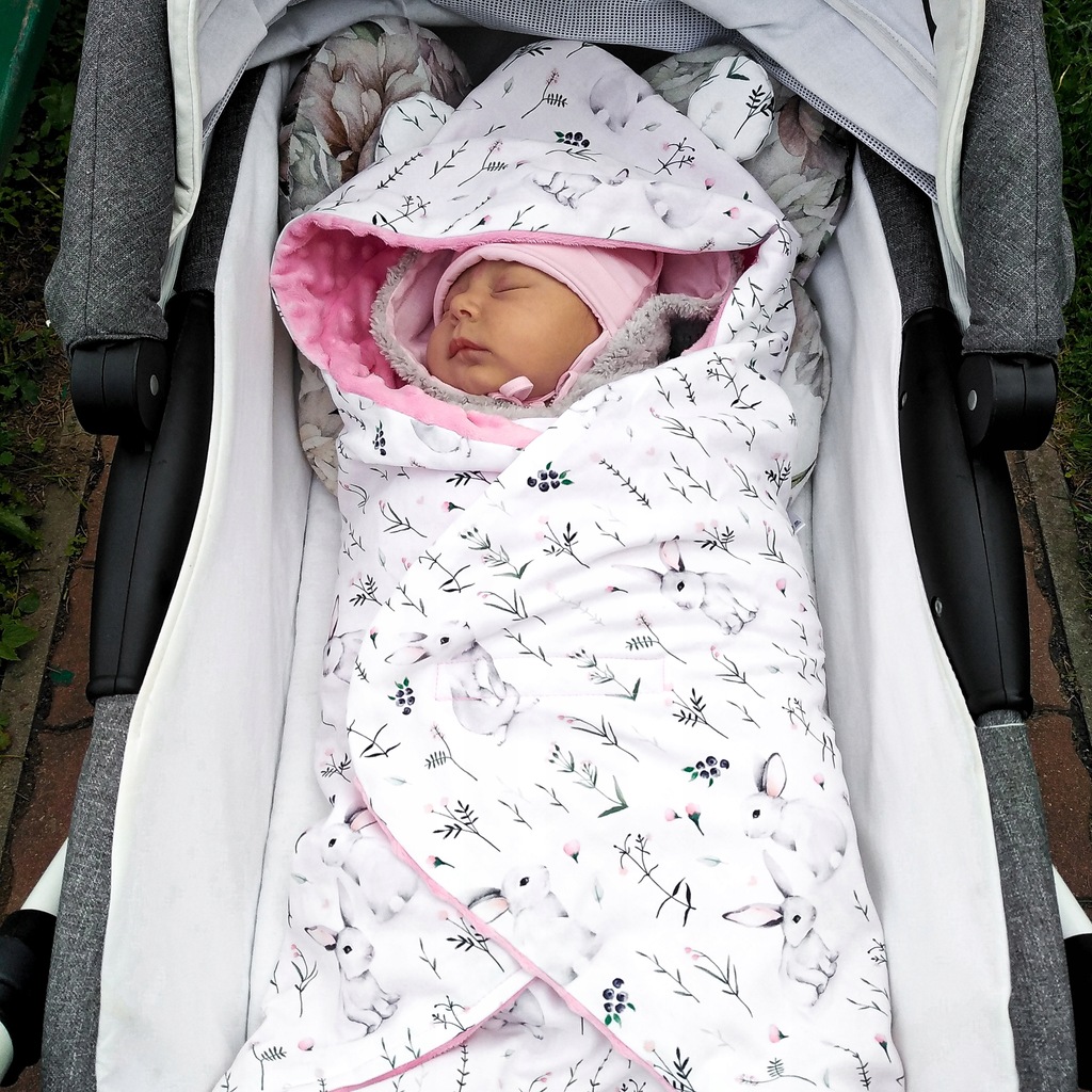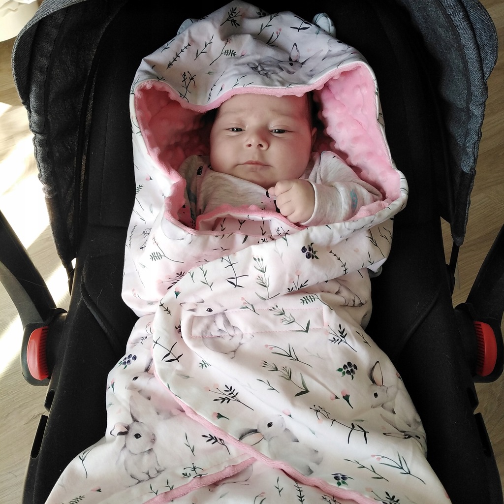 Świetnie sprawdzi się podczas codziennych spacerów i drzemek w foteliku, uniwersalny może być również używany jako śpiworek do fotelika czy gondoli, spełnia również funkcję rożka/becika.