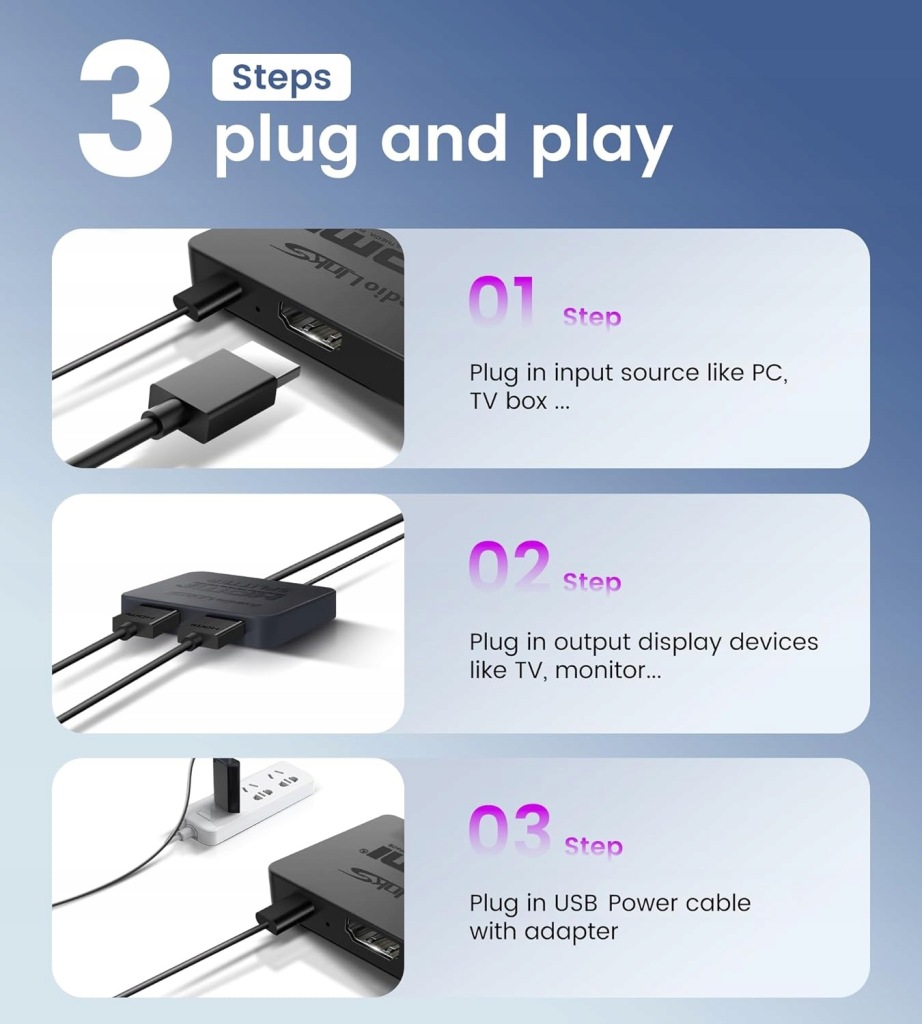 Wybierając rozdzielacz HDMI avedio links 1 na 2 wyjścia, zyskujesz niezawodne i proste rozwiązanie do jednoczesnego wyświetlania obrazu z jednego źródła na dwóch monitorach. Jest to idealny wybór dla osób potrzebujących funkcji duplikacji/kopii lustrzanej w rozdzielczościach do 4K Ultra HD i wsparciem dla 3D, bez konieczności skomplikowanej instalacji sterowników. Jego kompaktowe wymiary i lekkość sprawiają, że jest wyjątkowo przenośny i sprawdzi się zarówno w domu, jak i w podróży. Dodatkowo, dołączone kable USB i HDMI zapewniają gotowość do natychmiastowego użycia, co czyni go opłacalnym i wygodnym wyborem do rozszerzenia Twoich możliwości wyświetlania.