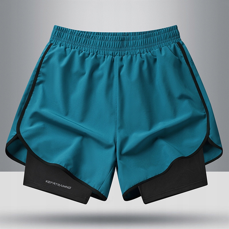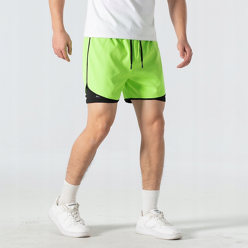 Spodenki męskie 2w1 z wszytymi szortami do bieganiaTreningowe, na siłownię, na rower spodenki sportoweSpodenki wykonane z elastycznej termoaktywnej oraz oddychającej tkaniny.