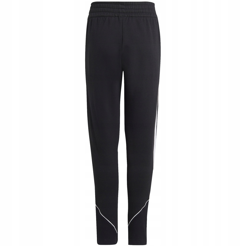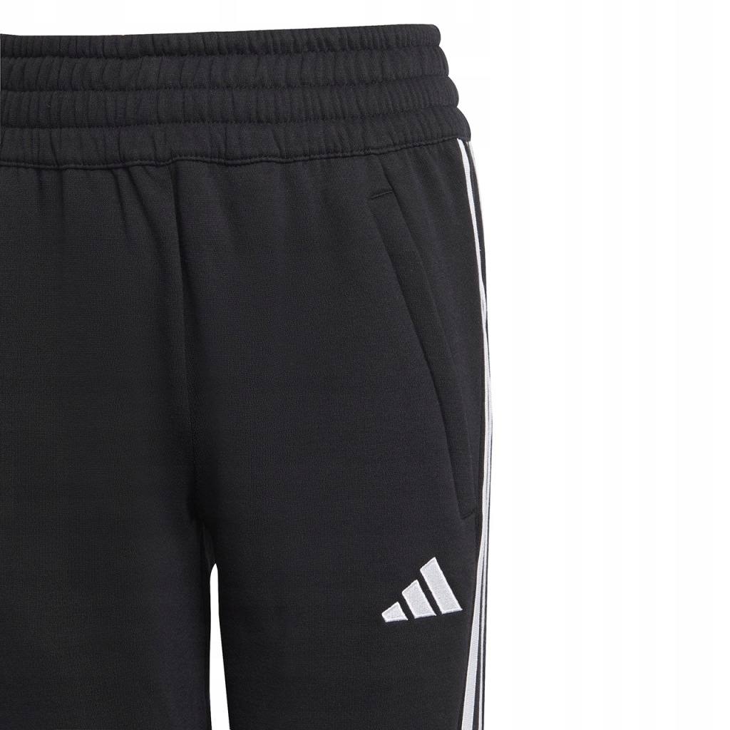 Spodnie dla dzieci adidas będące częścią linii Tiro wyniosły sportowy styl poza boisko, aby w codziennych sytuacjach czuć się wygodnie. Dominujące, bawełniane włókna w naturalny sposób wspomagają wentylację, więc przyjemne uczucie świeżości będzie wiernym towarzyszem Twojego podopiecznego na każdym etapie dnia. Ponadto dodatek poliestrowych włókien pozwoli zwiększyć trwałość. Regularny krój ze ściągaczowymi wstawkami w dolnej części nogawek swobodnie układa się na sylwetce, nie krępując w żaden sposób mobilności. Elastyczna talia z wewnętrznym sznurkiem do regulacji daje możliwość uzyskania jak najlepszego dopasowania do sylwetki. Zapinane kieszenie boczne oferują dodatkową przestrzeń do przechowywania drobiazgów, które zawsze warto mieć przy sobie. Model prezentujący klasyczną, czarną formę można bez problemu połączyć z różnymi kolorami koszulek i bluz tworząc stylizacje w sportowym stylu. Uzupełnieniem dopracowanego konceptu są kultowe paski i subtelne logo, które nawiązują do wysokiej jakości na jaką stawia producent. Spodnie zadbają o nieprzerwany komfort zarówno w drodze na trening, jak i w chwilach błogiego odpoczynku w domu.