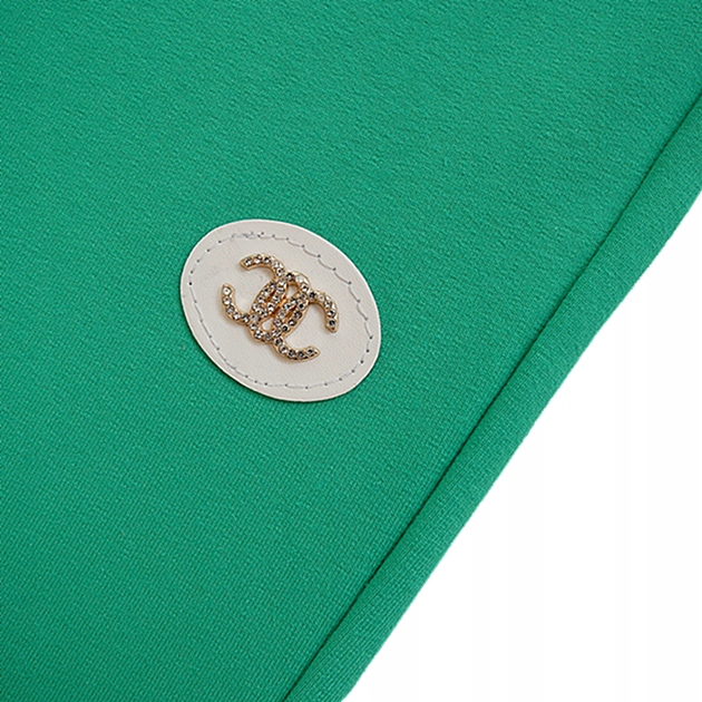 Bawełniane, dopasowane spodnie legginsy z ozdobną, mieniącą się naszywką od świetnego polskiego producenta GAMET. Spodnie uszyte z dresówki bawełnianej w kolorze zielonym.