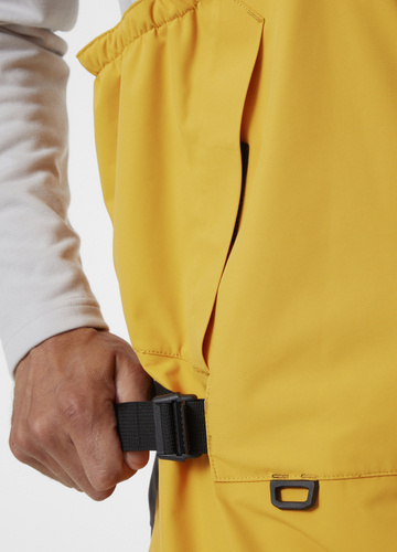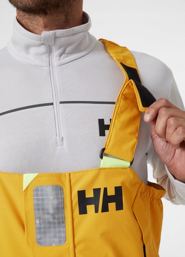HELLY HANSEN SKAGEN OFFSHORE SAILING BIB- to znane i sprawdzone na wodzie męskie spodnie sztormiakowe w nowej, ulepszonej wersji, które są doskonałym przykładem idealnego połączenia nowoczesnej technologii i wzornictwa z ponad stuletnią tradycją w produkowaniu profesjonalnej odzieży żeglarskiej. Uszyte z innowacyjnych i trwałych materiałów pochodzących w dużej mierze z recyklingu i zawierających w swej konstrukcji dwuwarstwową membranę Helly Tech® Performance. Zapewniają komfort oraz doskonałą ochronę przed wiatrem i wodą podczas przybrzeżnej żeglugi morskiej, a jednocześnie są bardzo lekkie i w pełni oddychające. W modelu zastosowano różne rozwiązania opracowane we współpracy z profesjonalnymi żeglarzami, m.in.: wyprofilowany kształt nogawek, solidne wzmocnienia na kolanach i na pośladkach, regulowane mankiety nogawek, regulację w pasie, elastyczne i regulowane szelki. Pozwalają one pracować na pokładzie bez obawy o uszkodzenie materiału, a jednocześnie zapewniają maksymalną swobodę ruchów. Wraz z kurtką 34255 HELLY HANSEN SKAGEN JACKET tworzą komplet, stanowiący doskonały wybór nawet dla doświadczonych żeglarzy morskich.