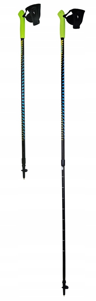 - Kije składają się z 2 regulowanych sekcji, dzięki czemu z łatwością można je transportować i dostosować do wzrostu użytkownika.