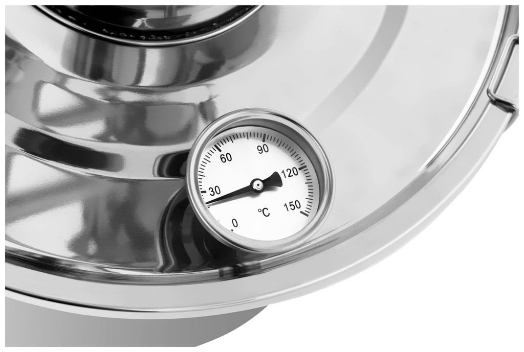 Wydajność destylarki Royal Catering gwarantują 30-litrowy zbiornik i duża kolumna wstępnego chłodzenia, w której zachodzi lepsze oczyszczenie destylatu. Wbudowany analogowy termometr zapewnia kontrolę powstawania produktu. Jego dobrą jakość uzyskasz dzięki niezbędnym akcesoriom dołączonym do zestawu. Gruba podstawa kotła daje możliwość podgrzania na wszelkich źródłach ciepła, np. kuchniach gazowych, elektrycznych oraz płytach grzewczych.