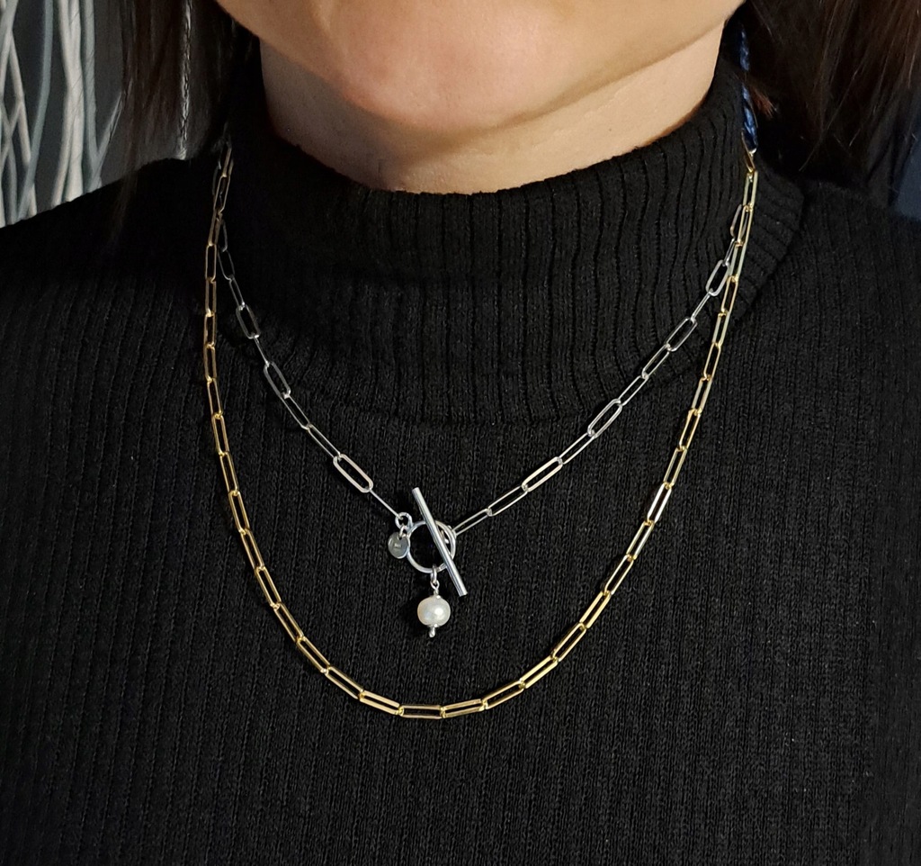 Pozłacany, bardzo modny naszyjnik z dużymi oczkami będzie oryginalnym uzupełnieniem stylizacji zarówno eleganckiej jak i casualowej. Naszyjnik pięknie będzie się prezentował jako dodatek do koszuli i marynarki jak również do bluzy lub t-shirtu.