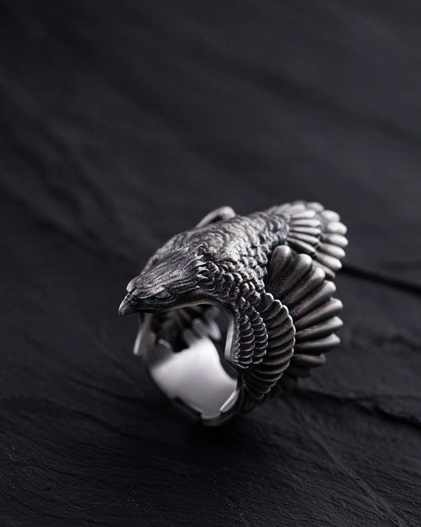 Srebrny pierścień THE EAGLE jest symbolem siły, wolności i wielkości. Orzeł, wkomponowany w design pierścienia, znany jest ze swojej dumy i potęgi. Ten ptak symbolizuje niezależność ducha i zdolność podbijania szczytów.
