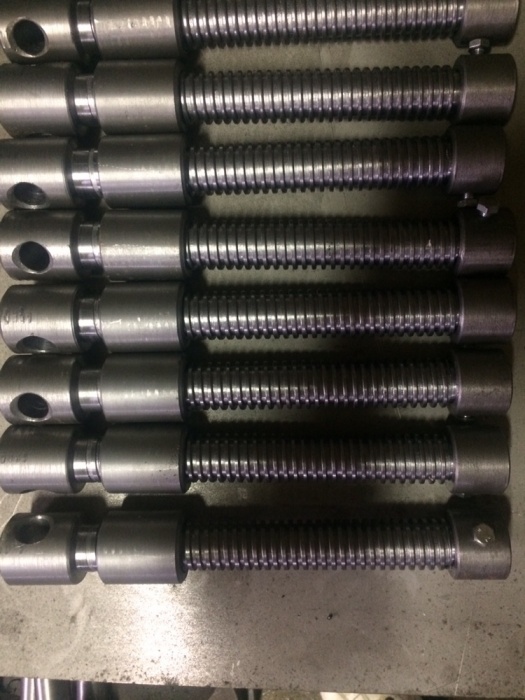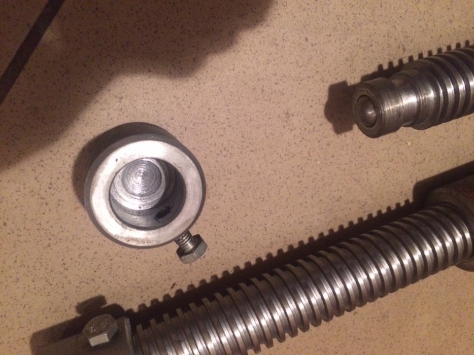 Witam. Posiadam do sprzedania śruby trapezowe. Śruby do ścisków stolarskich, z końcówką na końcu która obraca się na śrucie (kulce łożyskowej). Długość całej śruby to 25 cm. Średnica gwintu to Fi 26. Nakrętka długości 42 mm, Fi 37. Końcówka jest długości 27 mm, Fi 34. W razie pytań proszę dzwonić 666113164.