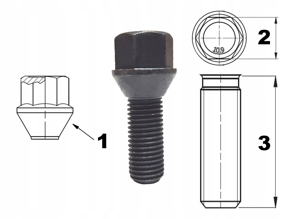 Prezentowane śruby, to precyzyjny i skuteczny system mocowania kół. Stop metalu użyty do ich wykonania, gwarantuje odpowiednią wytrzymałość połączenia gwintowego. Użytkownik może bez obaw zamocować koło, stosując zalecaną przez producenta pojazdu siłę przy ich dokręcaniu (Nm). Śruba zapewnia także pewne osadzenie klucza w trakcie dokręcania lub odkręcania.