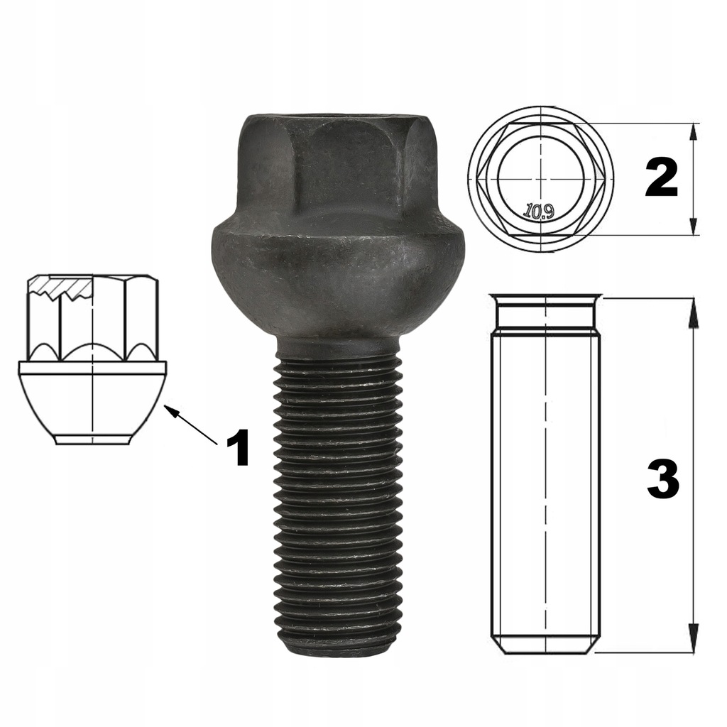 Czarne śruby do felg aluminiowych, stalowych M14x1.5 kulowa R14 - Carbonado - 20szt.