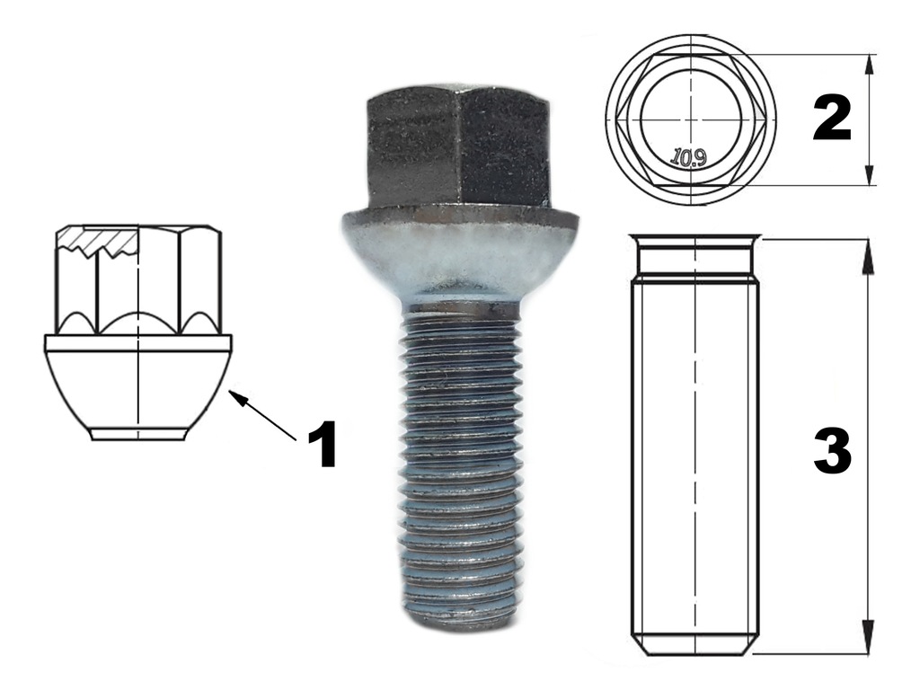 Prezentowane śruby, to precyzyjny i skuteczny system mocowania kół. Stop metalu użyty do ich wykonania, gwarantuje odpowiednią wytrzymałość połączenia gwintowego. Użytkownik może bez obaw zamocować koło, stosując zalecaną przez producenta pojazdu siłę przy ich dokręcaniu (Nm). Śruba zapewnia także pewne osadzenie klucza w trakcie dokręcania lub odkręcania.
