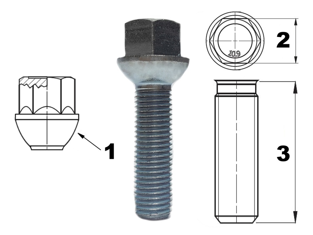 Prezentowane śruby, to precyzyjny i skuteczny system mocowania kół. Stop metalu użyty do ich wykonania, gwarantuje odpowiednią wytrzymałość połączenia gwintowego. Użytkownik może bez obaw zamocować koło, stosując zalecaną przez producenta pojazdu siłę przy ich dokręcaniu (Nm). Śruba zapewnia także pewne osadzenie klucza w trakcie dokręcania lub odkręcania.