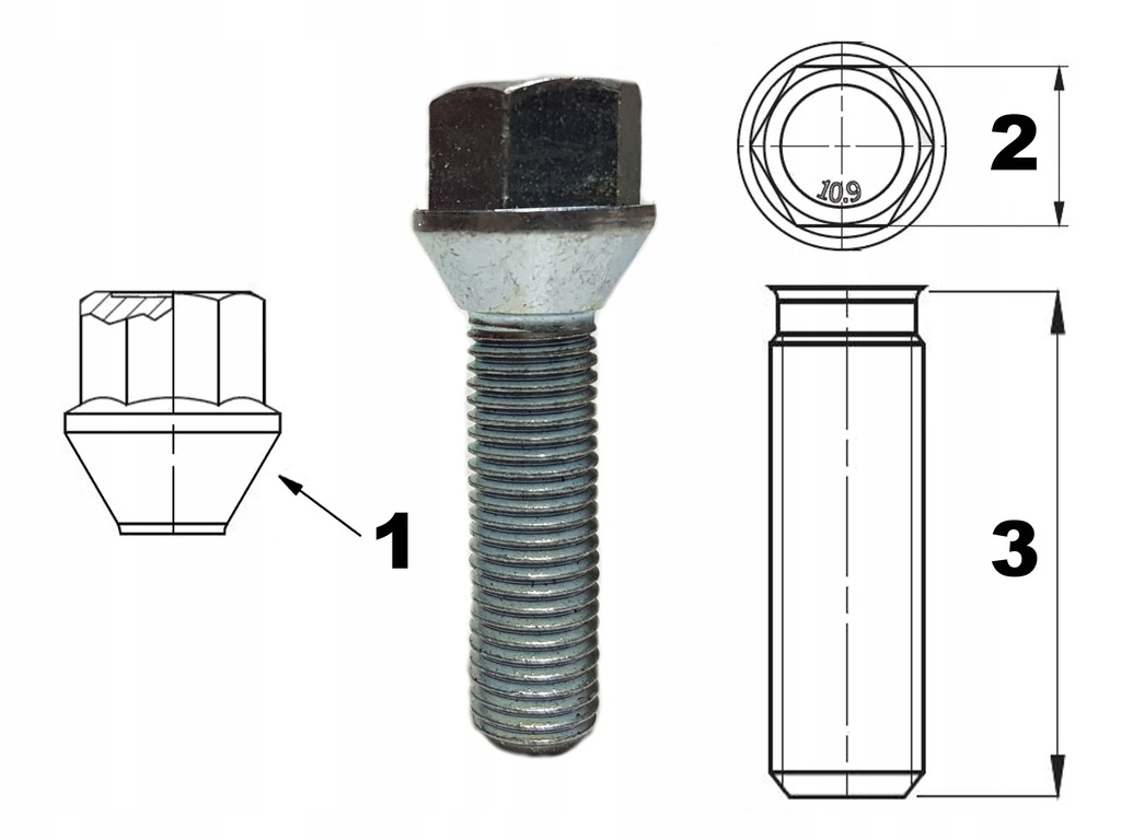 Prezentowane śruby, to precyzyjny i skuteczny system mocowania kół. Stop metalu użyty do ich wykonania, gwarantuje odpowiednią wytrzymałość połączenia gwintowego. Użytkownik może bez obaw zamocować koło, stosując zalecaną przez producenta pojazdu siłę przy ich dokręcaniu (Nm). Śruba zapewnia także pewne osadzenie klucza w trakcie dokręcania lub odkręcania.