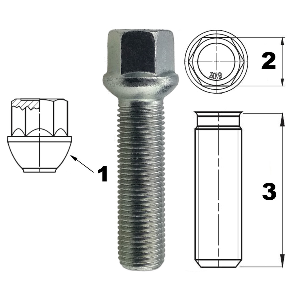 Śruby do felg / kół M14x1.50 kula / K17 – 50 mm